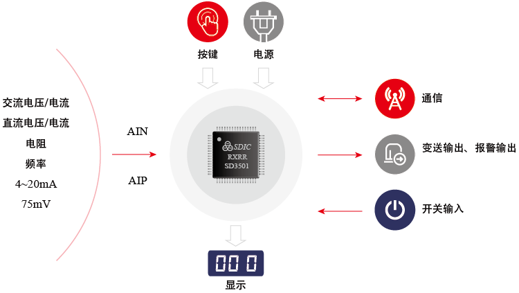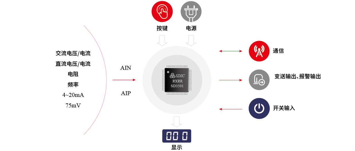 本系列产品针对数显仪表应用设计,芯片集成了TRMS计算器、显示驱动、UART、DSP、PWM等数显仪表常用外设,在交直流表头、多功能数显表、变送器仪表、4~20mA无源表、温控仪等多种仪表应用具备成熟方案,可实现交直流电压、交直流电流、频率等常见工业电信号的高精度测量,同时可扩展通信、报警、变送、开关量输出等多种不同的附加功能。内部集成先进的校准算法,满足测量精度的情况下,极大的节省客户的校表时间,且校准系数可保存至芯片内部,节省外部存储器。