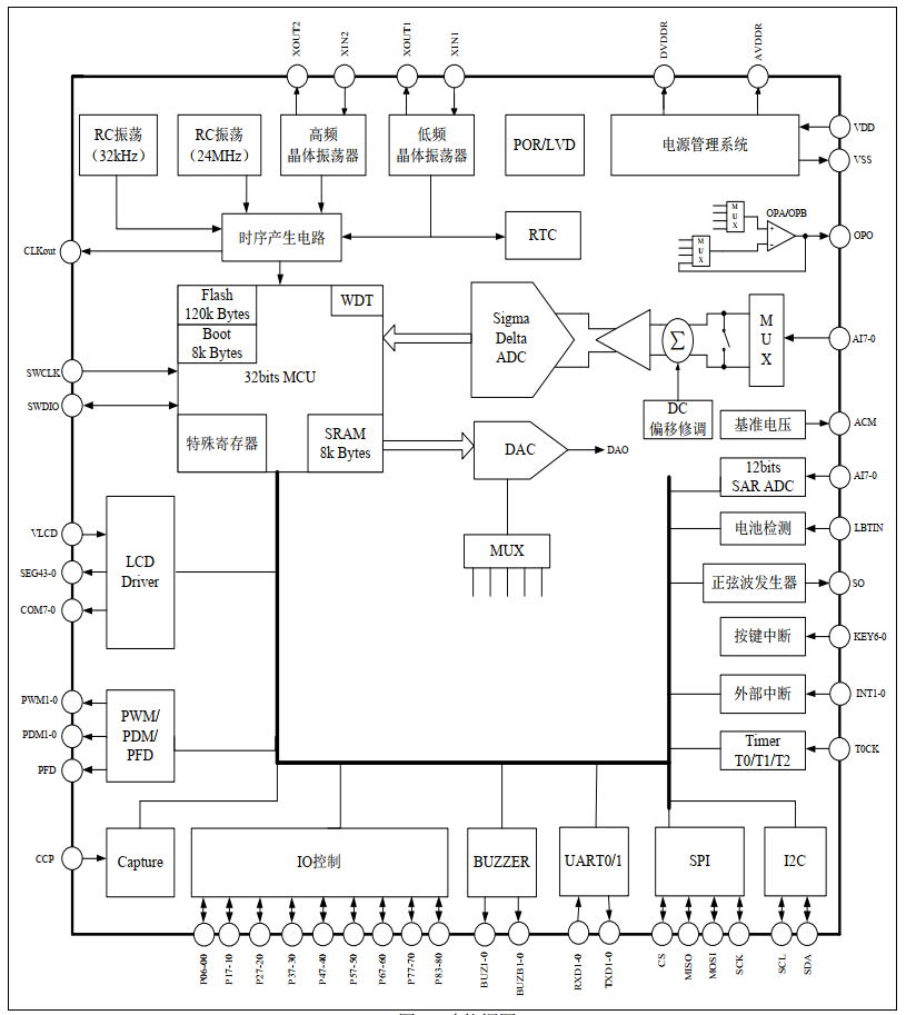 本芯片是带有 LCD 驱动和 24 位高精度ADC 的 32 位 MCU 的 SOC 产品,提供 120KBFlash 空间用于存储用户程序。